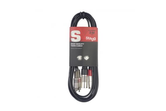 Stagg High Quality line cable, twin XLR male to twin RCA male. Compliant with the RoHS directive, available in multiple lengths.