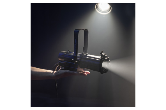 Mini theatre-style LED profile light, compact and suitable gobo projection or small illumination in schools, museums, event spaces or tight interiors.