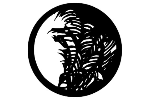 Palm Leaf gobo from our Rosco range of steel and glass gobo patterns, designed by Rosco. Rosco number 77127, DHA number 127.