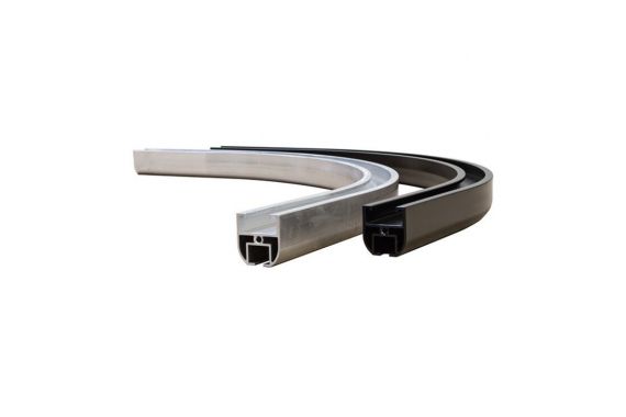 Doughty Rail is available in four standard curves and in two finishes, natural aluminium and black. Doughty Rail features a unique joint pin system which aids assembly and joint alignment. Each Curve features a 150mm straight lead in and lead out.