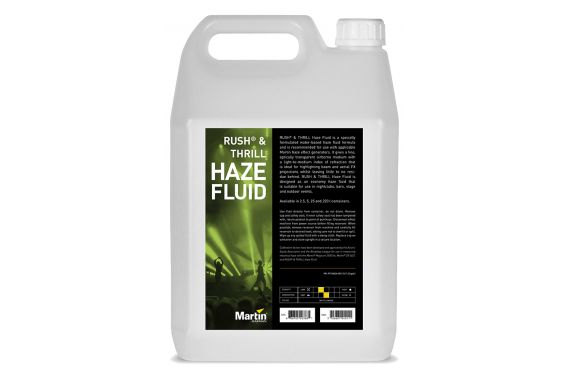RUSH & THRILL Haze Fluid is a specially formulated water-based haze fluid formula and is recommended for use with applicable Martin haze effect generators. It gives a fine, optically transparent airborne medium with a light-to-medium index of refraction that is ideal for highlighting beam and aerial FX projections whilst leaving little to no residue behind. RUSH & THRILL Haze Fluid is designed as an economy haze fluid that is suitable for use in nightclubs, bars, stage and outdoor events.